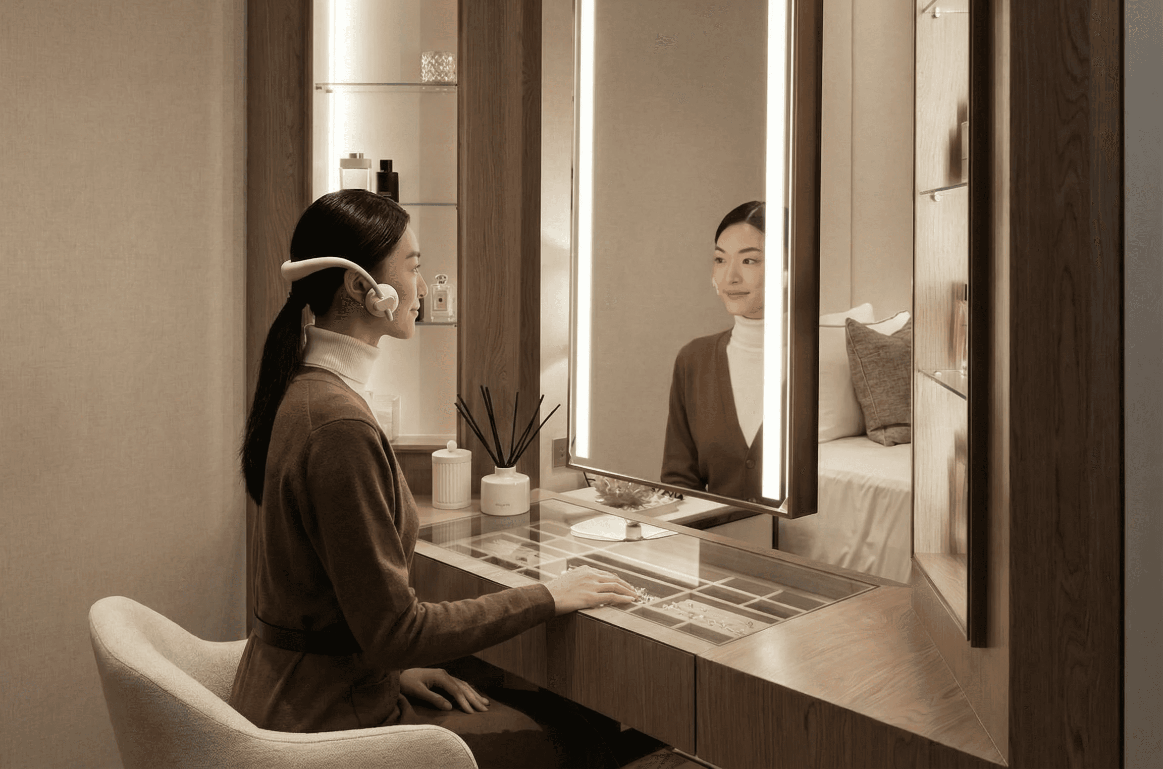 A hands-free EMS device for the skincare tech market, offering effortless maintenance for busy and multitasking users.